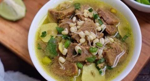 Varian Soto di Indonesia Dalam perkembangannya, soto menyebar ke seluruh Nusantara dan diadaptasi di banyak daerah dengan masing-masing ciri khasnya. Di Jawa Tengah saja, misalnya, ada beberapa jenis soto yang berbeda, misalnya Soto Kudus, Soto Purbalingga, Soto Sokaraja, Soto Wonogiri, Soto Pekalongan. Meskipun masih satu wilayah, namun jenis soto di provinsi ini punya karakter yang menghasilkan citarasa berbeda. Bahkan di Pekalongan muncul satu lagi varian soto, yakni tauto yang merupakan singkatan dari tauco soto. Tauto pekalongan memiliki kuah yang pekat dengan rasa pedas-manis dan diisi potongan daging kerbau atau sapi. Adapun Soto Kadipiro, Soto Tamansari, atau Soto Wonosari adalah tiga dari sejumlah varian soto yang ada di Daerah Istimewa Yogyakarta (DIY). Ketiga varian soto ini punya karakter sendiri-sendiri, ada yang memakai daging ayam atau daging sapi dengan karakter kuah dan isian yang tidak sama. Beberapa daerah di Jawa Timur juga punya ragam soto, semisal Soto Lamongan, Soto Madura, atau Soto Sulung Surabaya. Jenis soto di Jawa Timur biasanya ditaburkan serbuk koya untuk menambah kekuatan rasanya, juga terkadang ditambahkan telur rebus. Adapun Soto Sulung biasanya hanya memakai daging dan kuah kaldu sapi yang kuat. Di Jawa Barat terdapat Soto Mi Bogor, Soto Bandung, Soto Ayam Sunda, Soto Bebek Ciledug, Soto Sapi Banten, dan seterusnya. Tak ketinggalan Jakarta yang memiliki soto khas asli ibu kota, yakni Soto Betawi yang khas dengan santan kental dan kerupuk warna-warni.